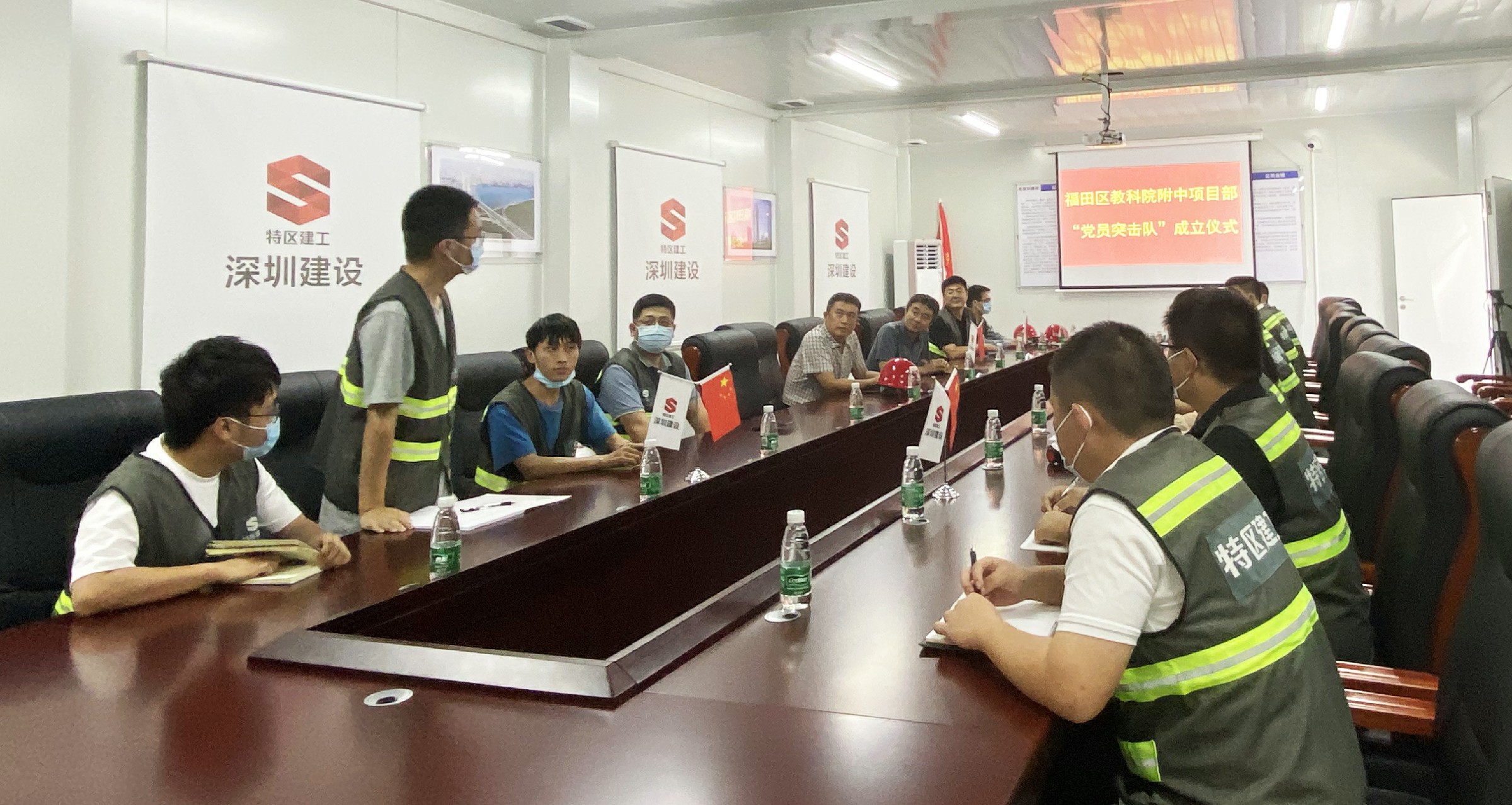 為促進黨建與項目生產(chǎn)相融合,激發(fā)一線黨員、青年干事創(chuàng)業(yè)熱情,6月28日下午,福田區(qū)教科院附中項目舉行了“黨員突擊隊”啟動儀式,建設(shè)集團黨總支書記、董事長兼總裁黃海,副書記石宏偉出席儀式。